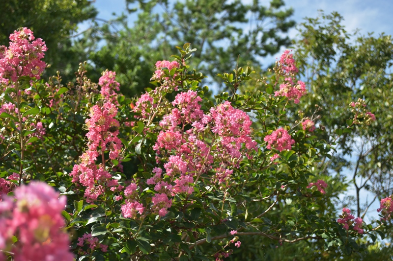 移ろいの庭・花の谷他 白や桃色のふわふわのお花 サルスベリ(百日紅、猿滑)