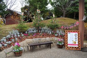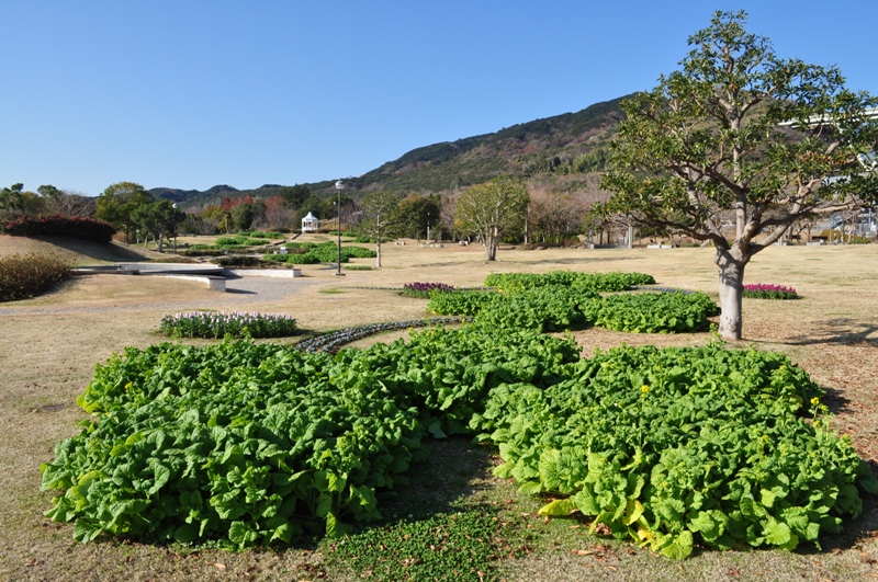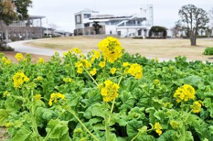 移ろいの庭の花型花壇にて冬から開花する寒咲きナノハナが開花を始めました!