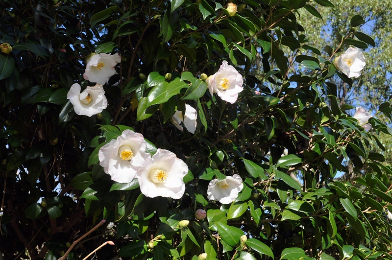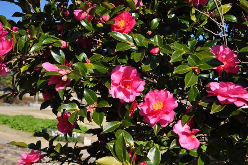 花の谷・花の丘道周辺 白や赤色の ツバキ