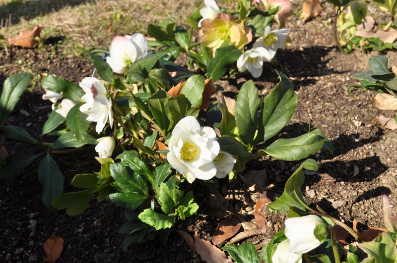 花の丘道(クリスマスローズガーデン) 白とクリーム色のクリスマスローズ