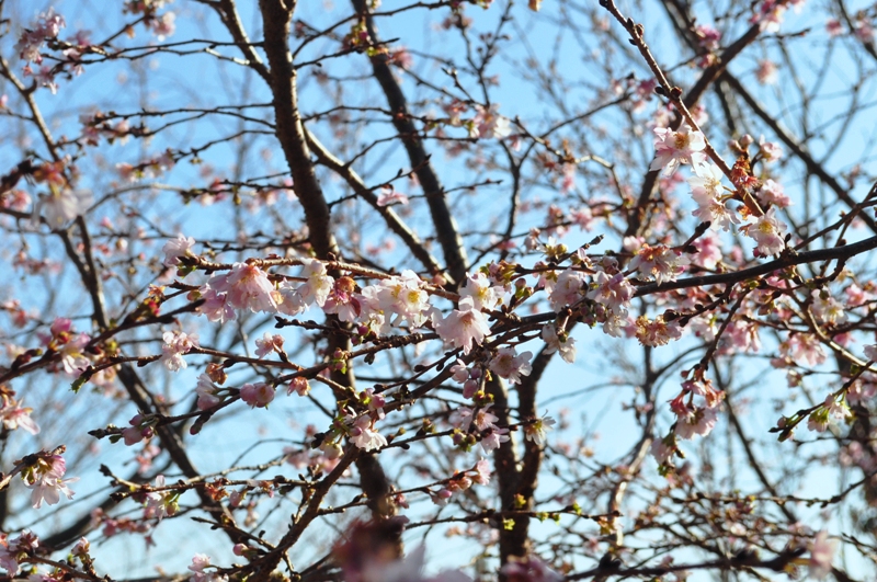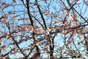 花の谷・花の丘道周辺 秋と春の2回花が咲く 四季咲き系サクラ(写真は花の丘道のウォーウィック)