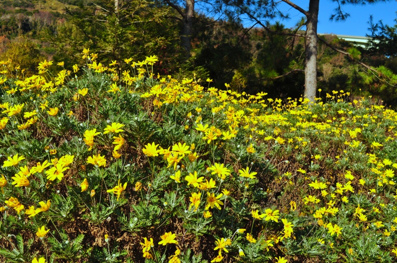 天壇テラス周辺 鮮やかな黄色のお花 ユリオプスデージー