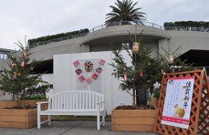ビジター等前ではお客様に飾り付けしていただいた縁起物飾りで飾られた木々も並んでいます。
