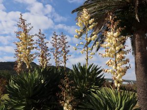 高さ2メートル以上あるアツバキミガヨラン。花がフサフサなっていて迫力があります。