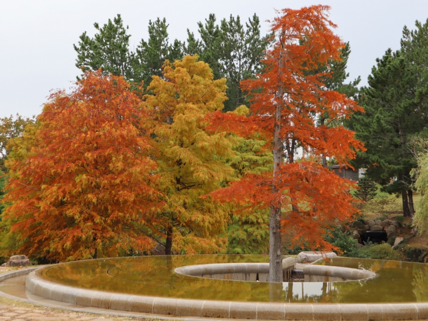 コスモスやダリアの時期が終わり、園内は木々の葉が秋の色づきになってきました。園外西側の山も色づき始め、弊園の借景となっています。春までは花が少なくなり、お伝えする情報に葉っぱと木の実成分が増えますこと、ご理解のほどお願いいたします。