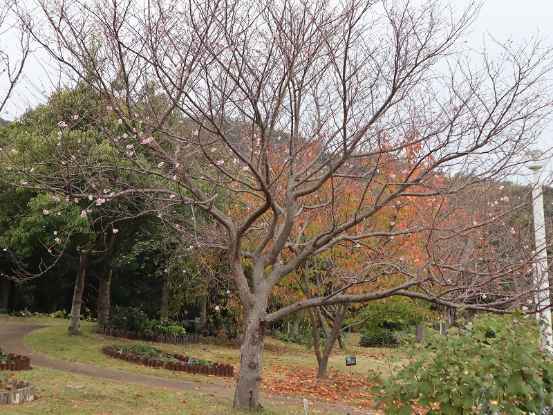 春と秋の二季咲きのサクラですが、花の丘道周辺のほか、花の谷や空のテラス周辺でも違う品種が咲いています。