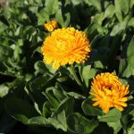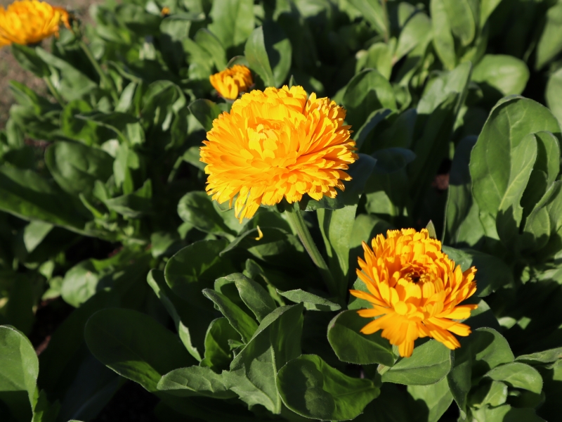 写真一・二枚目:寒咲きナノハナ、写真三枚目:キンセンカ(場所:移ろいの庭)