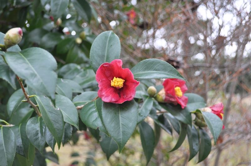 花の谷・花の丘道周辺 白や赤色の ツバキ