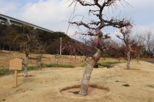 また、同じエリアには赤や桃色のウメのお花も咲き始めています。