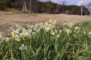 春一番の丘 白い花びらと黄色いカップがかわいい ニホンスイセン