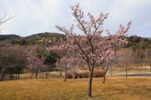 春一番の丘では2本の寒桜が見ごろとなっています。