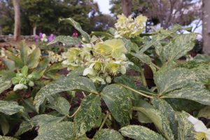 斑入りの葉と緑色の花の原種 アーグティフォリウス‘スノーフィーバー’