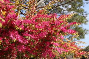 花の谷 紅色のひもみたいなお花 ベニバナトキワマンサク(紅花常盤万作) 咲き始め