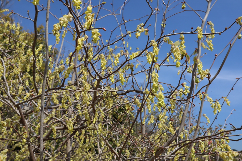 花の谷 淡い黄色の花が枝垂れるように枝にたくさん トサミズキ(土佐水木)