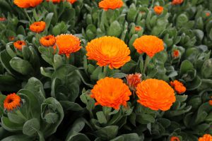 タコトピアリー横淡路島型花壇 濃い橙色 キンセンカ