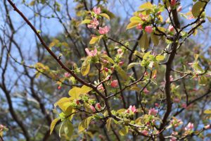 花の谷 淡いピンク色のお花 秋には大きな黄色の木の実 カリン(花梨)