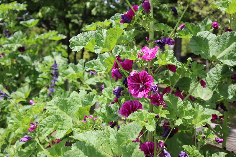 花の丘道 高く伸びた茎に紫色のお花 コモンマロウ