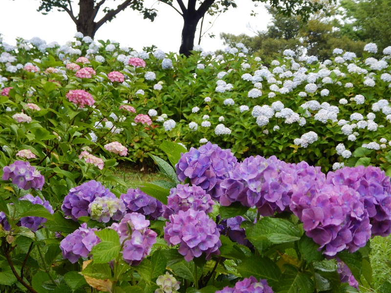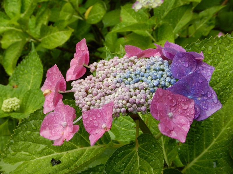 今日は小雨でしたが、アジサイがみずみずしく綺麗でした。空いていますし、雨の日の園内もいいものです。