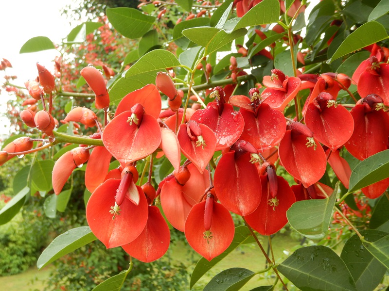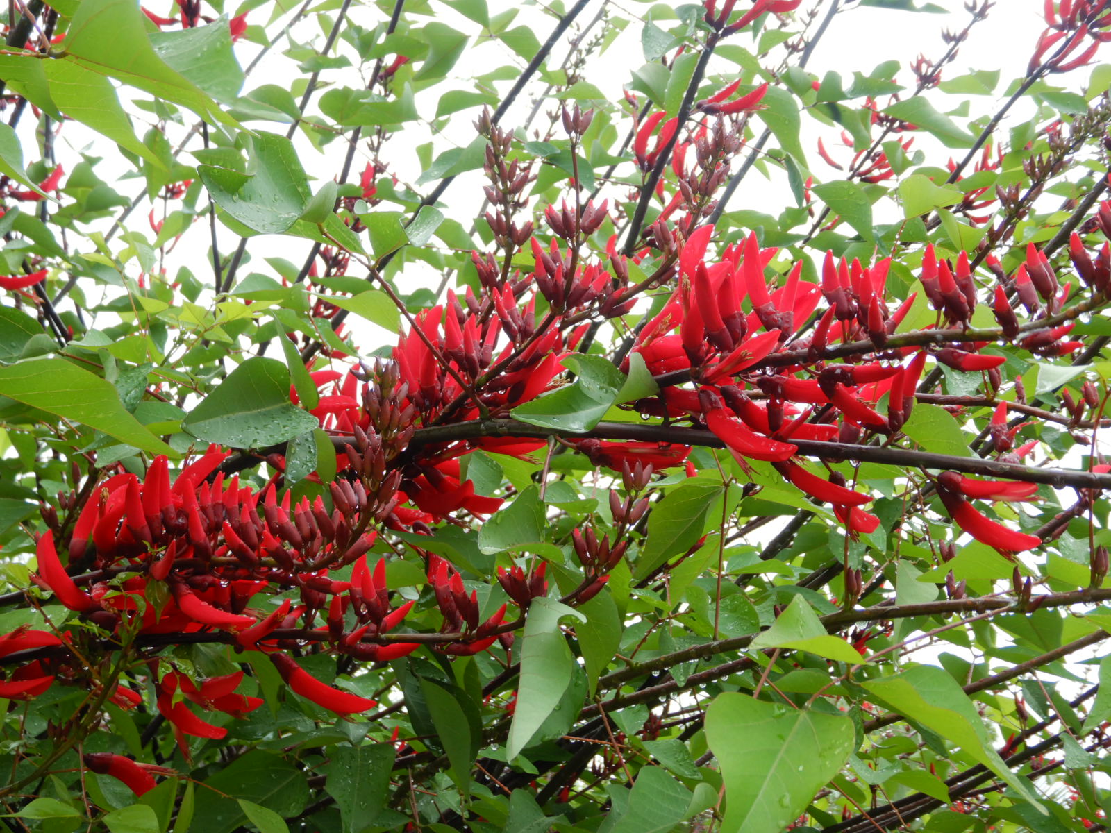 丸っこいヒラッとした花はアメリカデイゴです。(場所:レストラン花屋敷周辺や子供の森周辺)