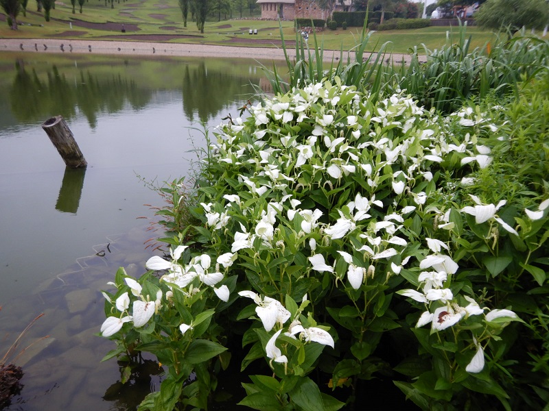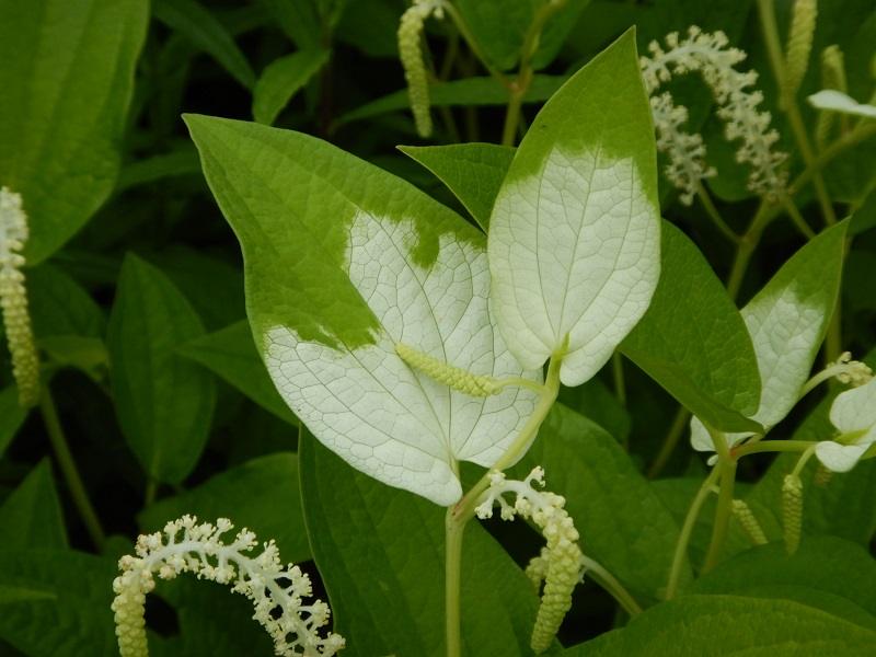 花は目立ちませんが葉っぱが半分白くなり、まるでおしろいを塗ったようです。