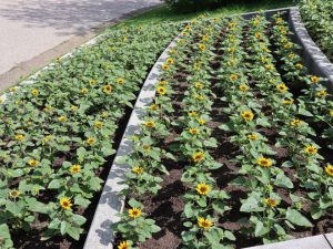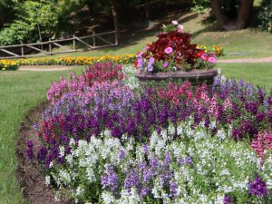 先週は階段花壇のみでしたが、ポプラの丘は半分以上が開花しました。