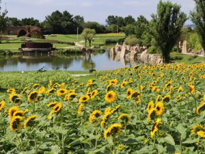 ポプラの丘には、「ゴッホのひまわり」「マティスのひまわり」「モネのひまわり」が植わっていますが、現在は「ゴッホのひまわり」が、まさに絵画のように綺麗に咲いています。