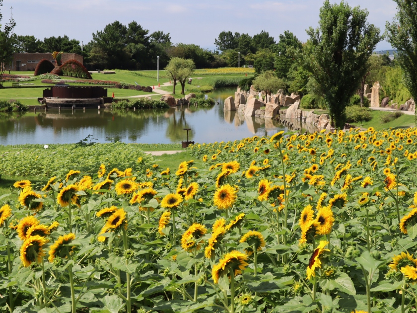 (写真左:大地の虹北花壇、写真右:「ゴッホのひまわり」)