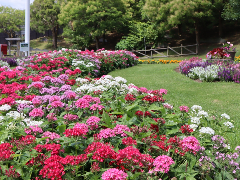 園内広範囲に夏の花が咲きそろっています。鮮やかな色が園内を華やかに彩っています。