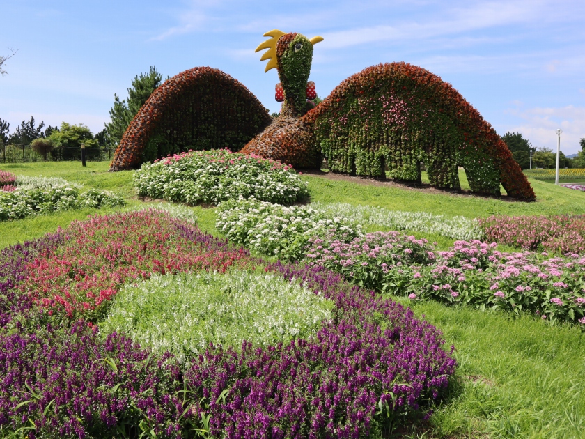 大地の虹南花壇はまだまだ3分咲き程度で、これから順次開花していきます。大地の虹北花壇は更に遅く、8月上旬以降に開花予定です。
