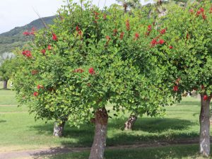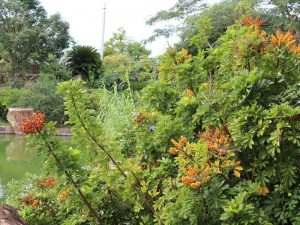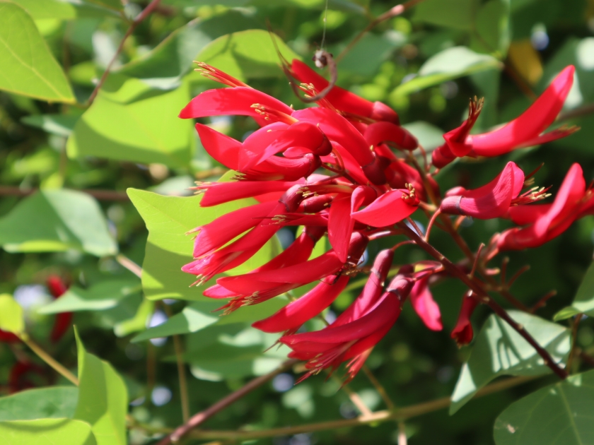 写真左右とも:サンゴシトウ(ヒシバデイゴ)(場所:パームガーデン、移ろいの庭ほか)