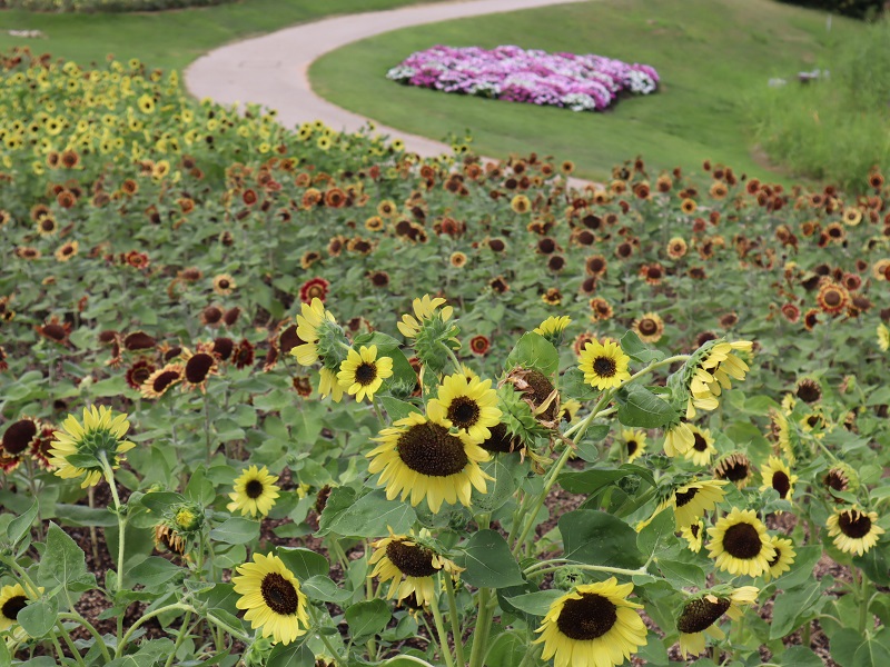 写真右は大地の虹(南)です。ほぼ終わっています。来週以降、秋の花苗に順次植替えに入る予定です。