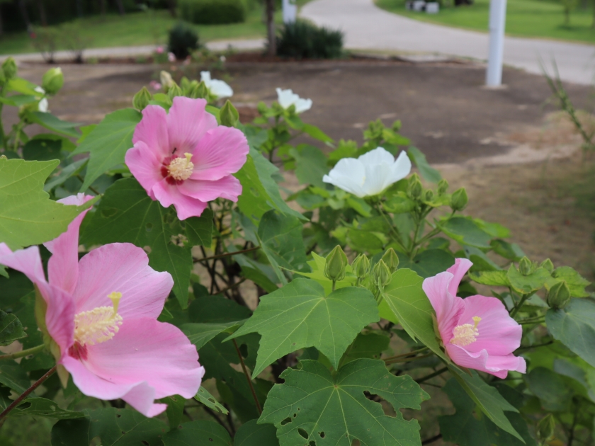 フヨウが咲き始めました。フヨウもムクゲもハイビスカスと同じ仲間で似ています。