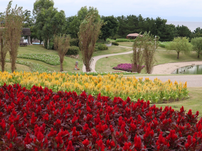 ポプラの丘は、上段も下段も見ごろの一歩手前です。まばらにまとまって咲いているので、場所によっては’映える’写真も撮れそうです。インパチェンスとケイトウは準備万端、お花のパッチワークに見えるまであともう少し。
