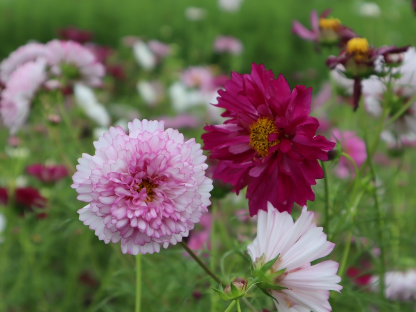 ◆コスモス   場所:ポプラの丘 ⇒ 見ごろ一歩手前、大地の虹北花壇 ⇒ 一部品種が見ごろ、大地の虹南花壇 ⇒まだまだ