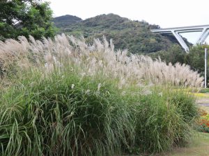 いろいろなススキが風に吹かれてそよいでいます。