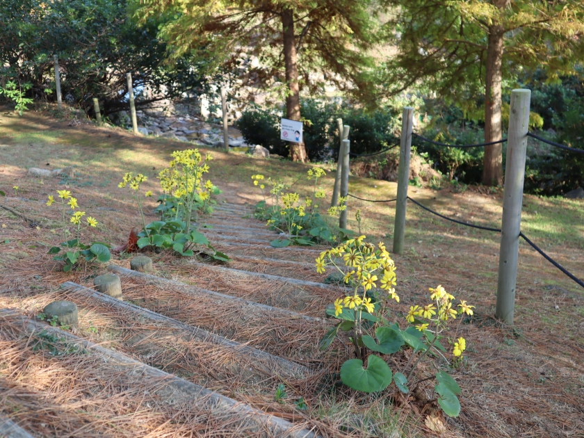 写真一・二枚目:ツワブキ(場所:花の谷、空のテラス周辺ほか)