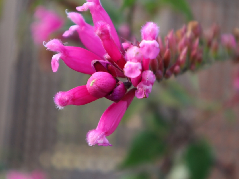 サルビア・ファリナセアは別名ブルーサルビアと呼ばれる一年草扱いのサルビアです。なお園内には植わっていませんが、みんなが知っている赤いサルビア(サルビア・スプレンデンス)は一年草です。