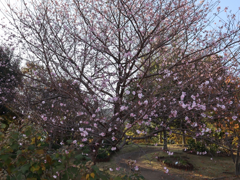春と秋の二季に咲くサクラが、ポプラの丘上段から花の丘道近辺で見られます。