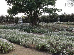 兵庫県の花、ノジギク。海岸口ゲートそばで広めに咲いています。小規模ですが、花の丘道のノジギクは満開状態です。