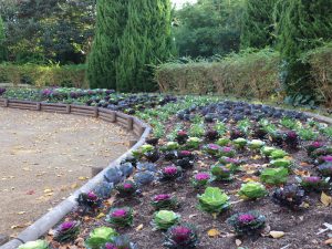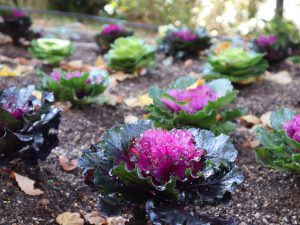 写真一・二枚目:ハボタン(場所:花の丘道 半円形花壇)