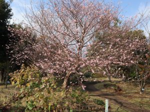 春と秋の2つの季節に咲く桜。10月から咲いていますが、ポプラの丘のコスモスなどを抜き取ってスッキリした今、目立っています。