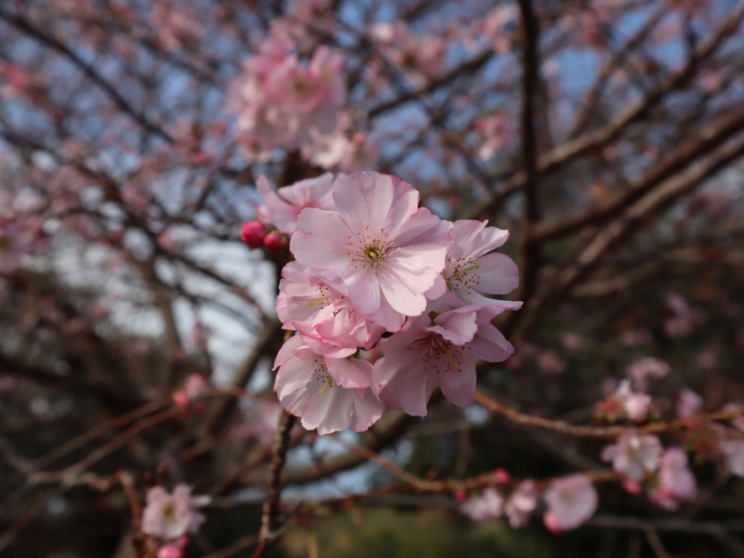 写真一・二枚目:サクラ「アーコレード」、三・四枚目:サクラ「ウォーウィック」(場所:花の丘道 クリスマスローズガーデン)