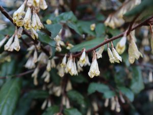 これまた地味地味。ソバカスだらけの1.5㎝ほどの花が枝にぶら下がっています。