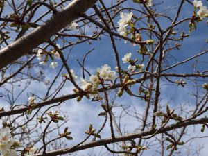 小さいけどぎゅっと花びらのつまった八重寒緋桜はただいま見頃!白の大島桜は咲き始めです。