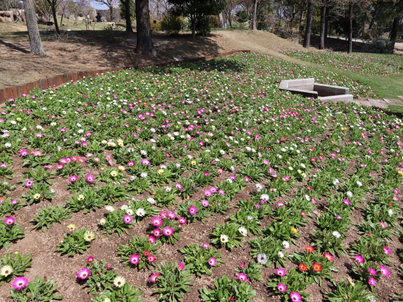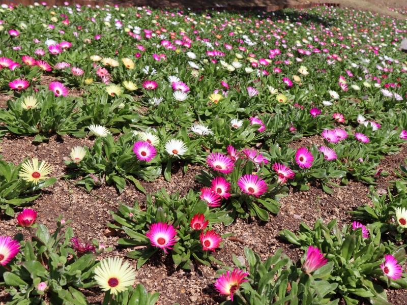 まだ一面の花絨毯となるには少し早いですが、ピンクや黄色のお花がご覧いただけます。