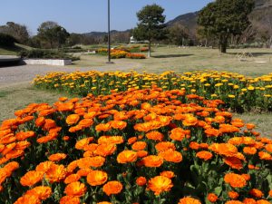 橙と黄色が鮮やかなキンセンカは花がたっぷりで見ごたえあり!