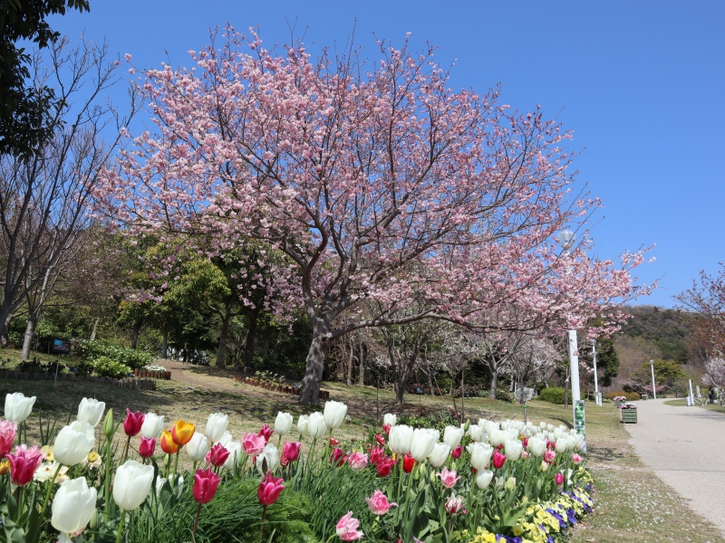三枚目:大島桜(オオシマザクラ)(花の丘道)、四枚目:染井吉野(ソメイヨシノ)(連絡口ゲート周辺)