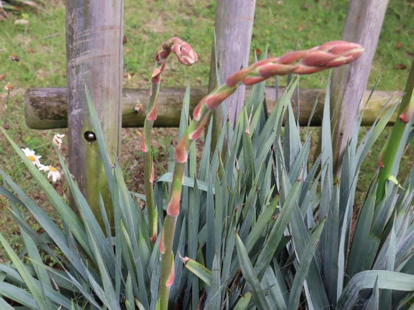 まだ開花は先ですが、アスパラに似た花茎が出てきました。イトランは葉っぱにピロピロした糸状の物が付いているのが特徴です。