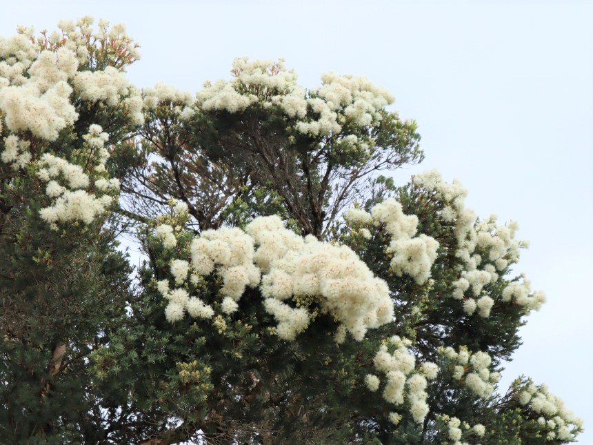 写真一・二枚目:メラレウカ‘スノーインサマー’(場所:移ろいの庭周辺、東浦口ゲート横)