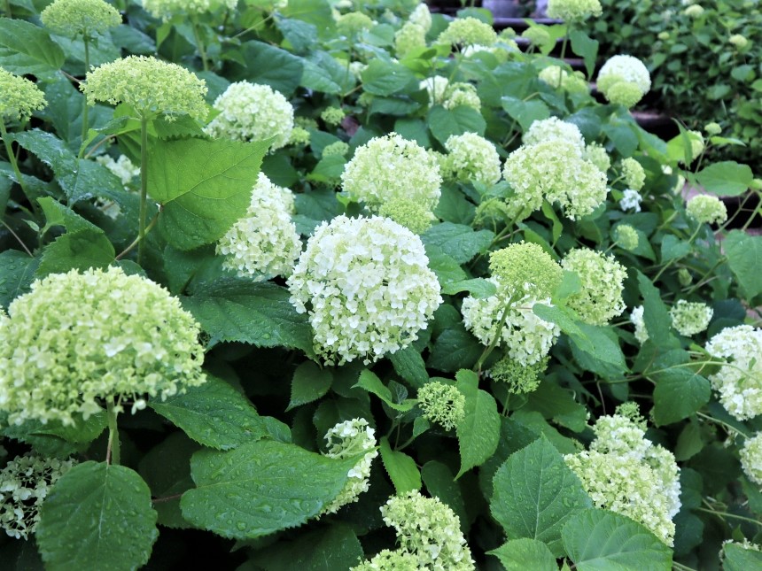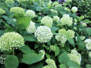 人気のアメリカノリノキ‘アナベル’も一部が緑色から白へと色づき始めました。